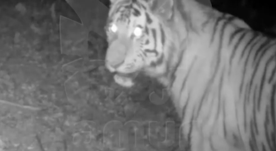 Тигр попал на видео во время охоты под Хабаровском. Он был всего в шести километрах от города.