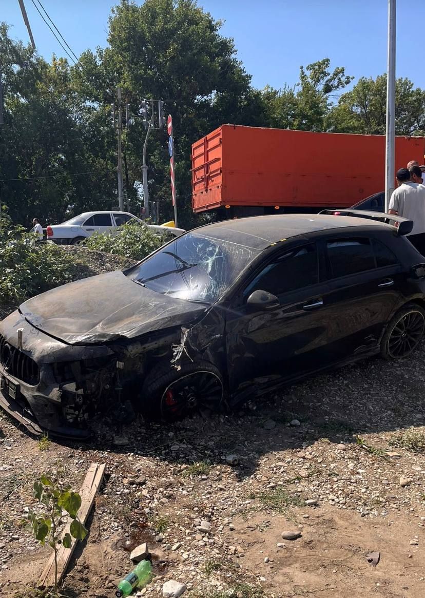Как стало известно Mash, он ехал вместе с другом к своей семье, которая, в отличие от него, не эмигрировала из родной республики в Великобританию. Mercedes-Benz AMG A35 (стоит в районе 4 млн рублей) ММА-шника улетел в кювет после столкновения — левое крыло и колесо смяло, лобовое стекло треснуло, задняя часть сохранилась. Очевидцы вытащили бойца из салона — он попросил их не фотографировать его.