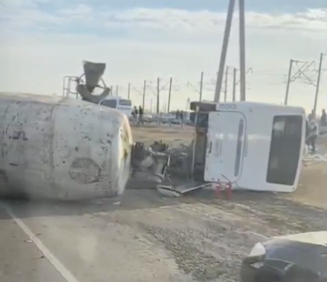 На трассе в Астраханской области столкнулись автобус с вахтовиками и бетономешалка