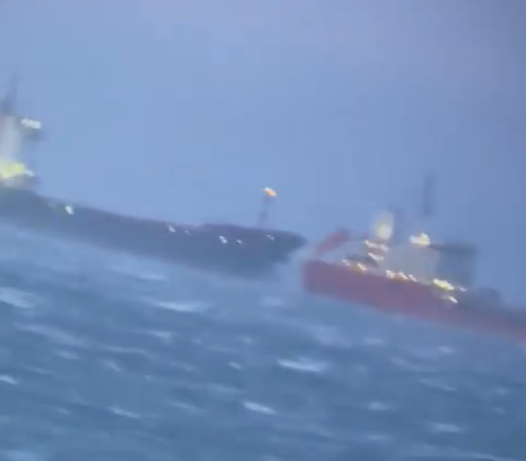 Танкер наехал на сухогруз в Чёрном море. Суда не смогли разойтись и несколько часов находились в сцепке.