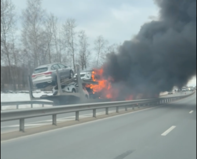 Фура с шестью новенькими Haval примерно на 18 млн рублей загорелась на трассе А108 в подмосковном Серпухове.