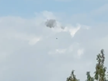 Момент уничтожения одного из беспилотников в небе над Подольском. Видео сняли в районе 12:00.