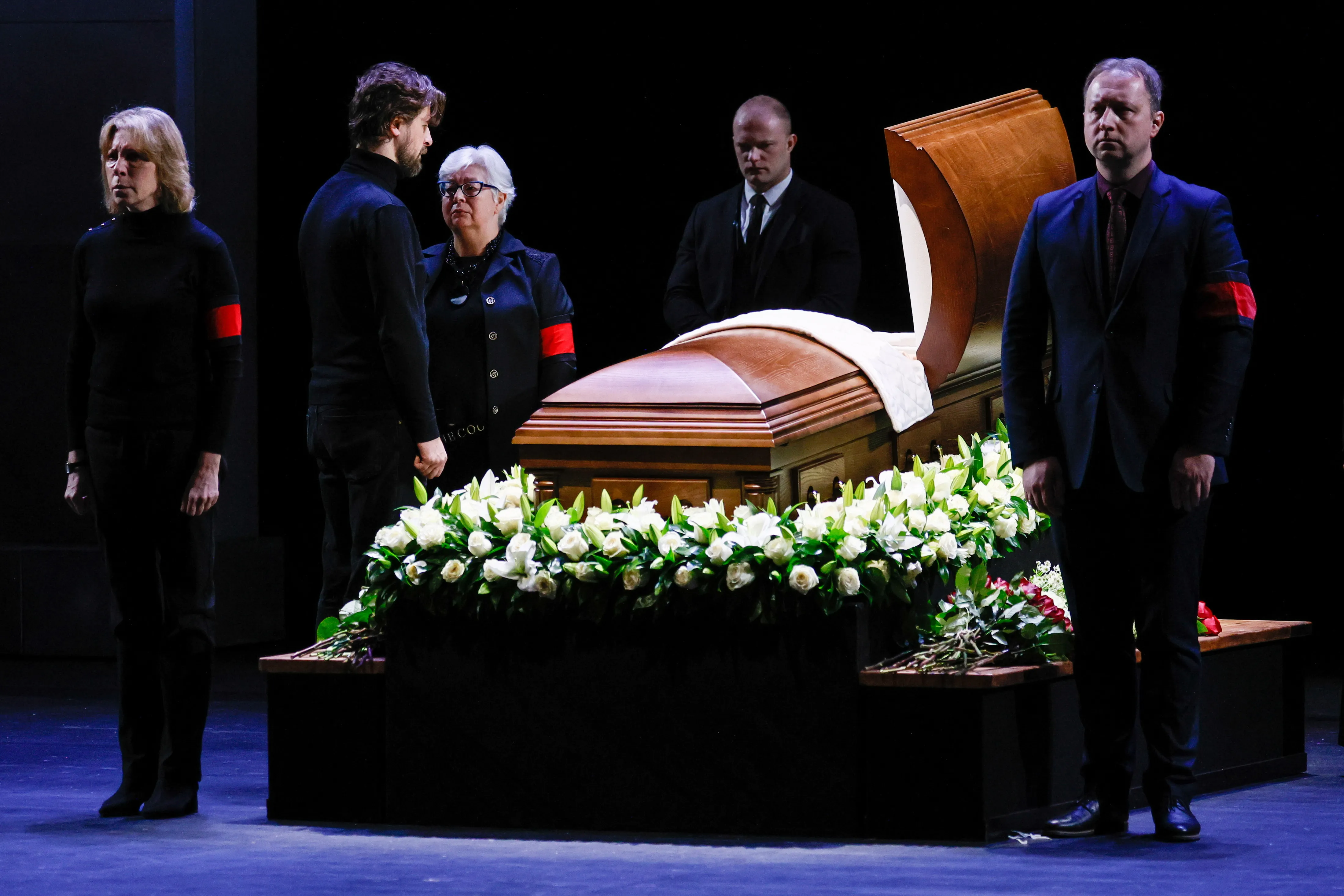 Проводить российского актёра в последний путь пришли семья, близкие друзья и коллеги, среди них — артист Виктор Добронравов, режиссёр Сергей Урсуляк, актёр Александр Яцко и актрисы — Юлия Рутберг и Яна Соболевская.